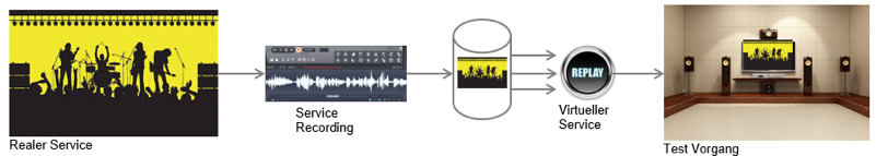 “As a spectator (in this case the software tester) of a rock concert (real service/interface) I would like to enjoy it again and again. For this I buy a Blu-ray disc (Record Data) to play the concert in my test environment again and again (virtually) (Replay), even in phases when the development environment cannot be reached (Timeout)”.
